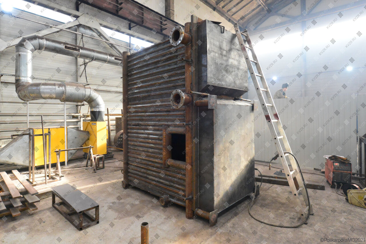 Все водогрейные котлы 1200 кВт нашего производства - стальные, горизонтальные, водотрубные, прямоточные и компактные. Трубная часть котельного блока выполняется из труб различных диаметров, материал труб сталь 10 и 20. Блок снаружи обваривается стальной охлаждаемой полосой, поэтому в наших котлах исключена возможность задымления котельного зала. Снаружи на каркас из профильной трубы и швеллера крепится утеплитель и декоративная обшивка из полимерного листа. В обшивке предусмотрены лючки для очистки поверхностей нагрева.